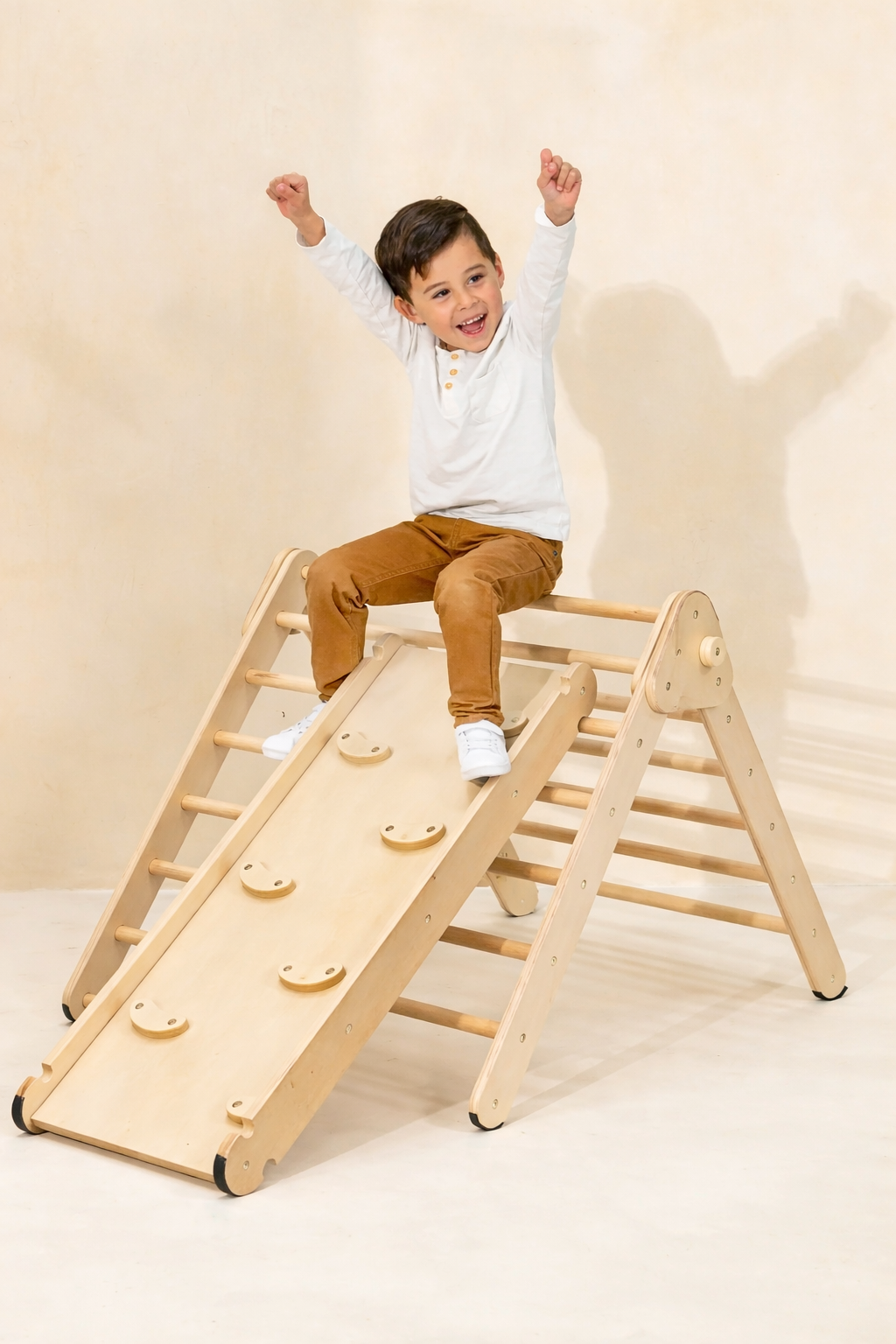 Vårt Pikler-triangel er det ultimate valget for foreldre som ønsker å gi barnet sitt en trygg, stimulerende og holdbar lekeopplevelse. Vår versjon skiller seg ut fra andre i markedet ved å ha ekstra sidebeskyttelse på sklien, men det er ikke alt - vårt feste på sklien er også solid konstruert, i motsetning til andre som kun har en tynn planke til å feste.